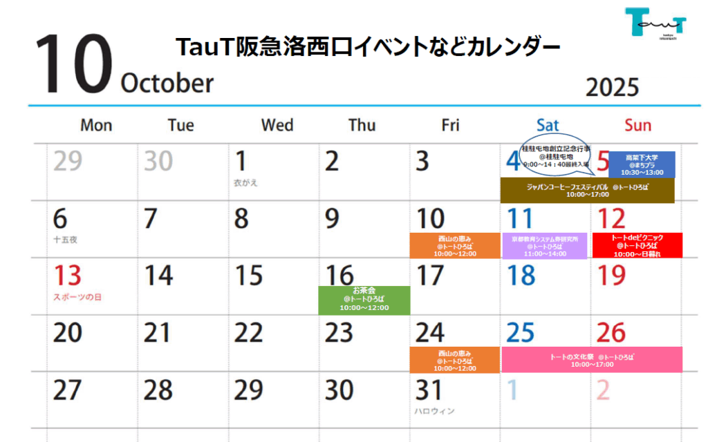 TauT阪急洛西口および関連店舗、関連施設、取り組みやイベント行事、その他関連するアカウントの情報をリアルタイムで発信することにより、一般のお客様や関連企業、関連業者様へより身近でタイムリーな情報を提供できるよう努め、ソーシャルメディアを利用して拡散することで、情報を広めることを目的とします。
