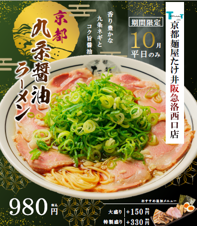 京都麺屋たけ井TauT阪急洛西口店9月平日限定のメニューです。