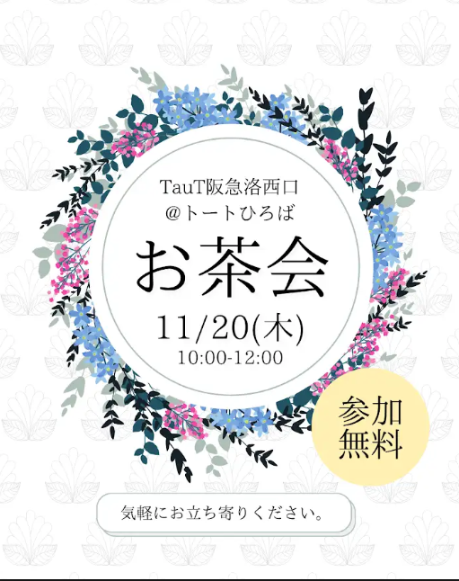 トート阪急洛西口では、トートひろば南側 阪急洛西口高架下において月に1度程度でお茶会を行っております。